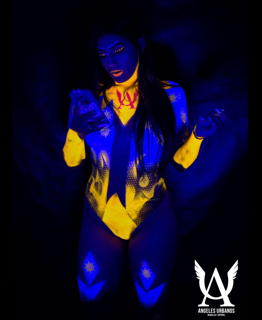 El bodypainting con pigmentos neón ilumina la piel con colores vibrantes que cobran vida bajo la luz ultravioleta. Su efecto fluorescente crea un espectáculo visual único, perfecto para fiestas temáticas, shows en vivo, fotografía artística y eventos nocturnos donde el arte brilla con intensidad propia.
